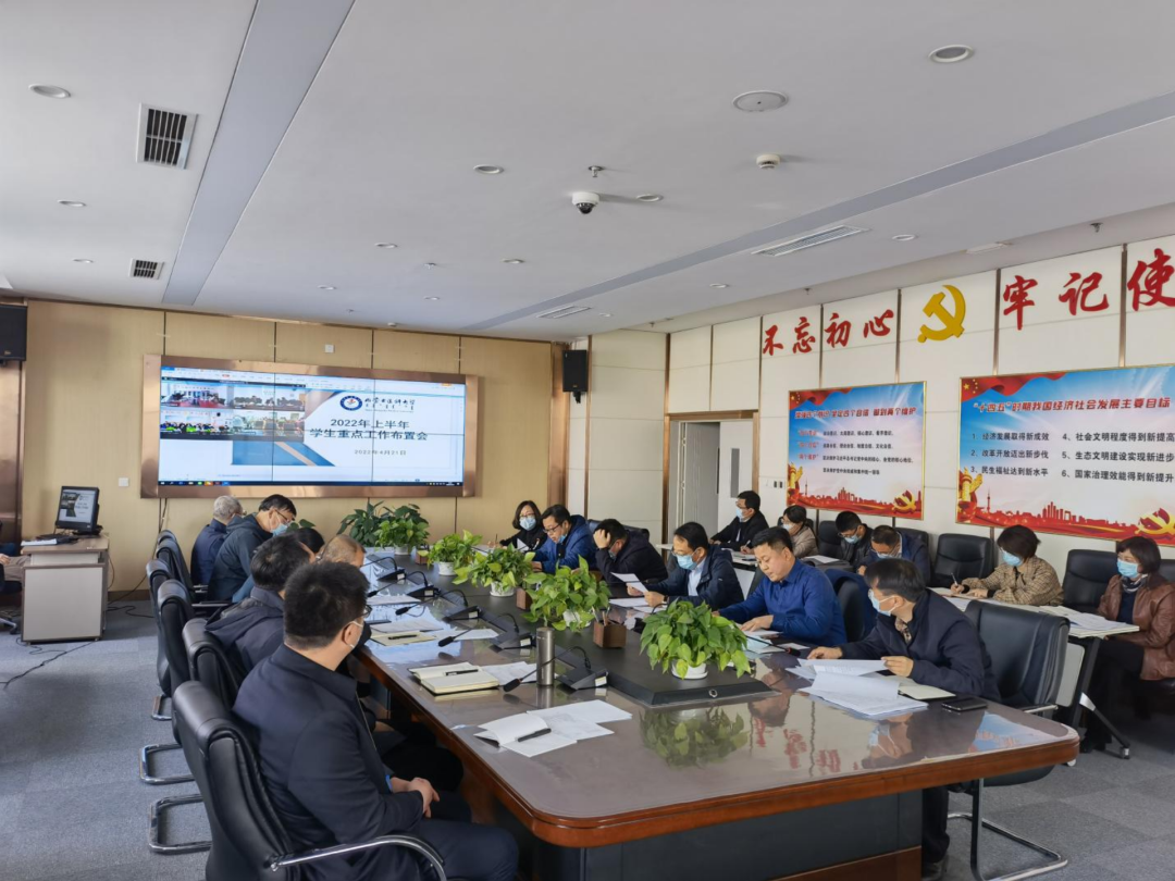 4月21日上午10:00,学校在新华校区实验教学综合楼410会议室组织召开2022上半年重点工作推进会。学校党委委员、副校长鲁海文,学生工作部、团委、教务处、招生就业处、实践教学基地管理处负责人、各学院分管学生工作领导(呼市地区)线下参会,驻呼外各临床学院设线上分会场,分管领导、学生工作办公室(部)负责人线上参会。会议由学生工作部部长苏雅拉图主持。