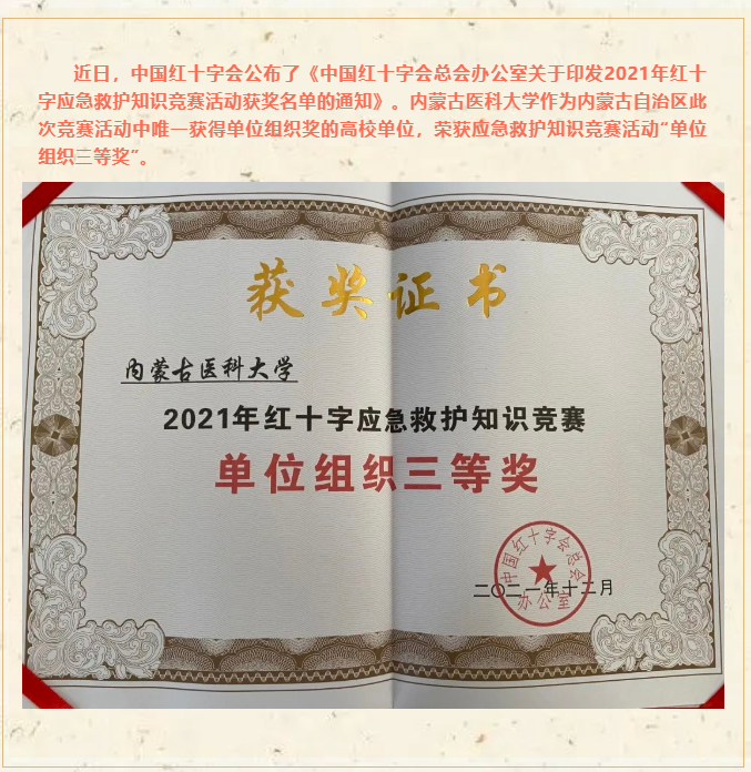 喜报|内蒙古医科大学是全区唯一一所高校获得中国2021年红十字应急救护比赛奖项单位