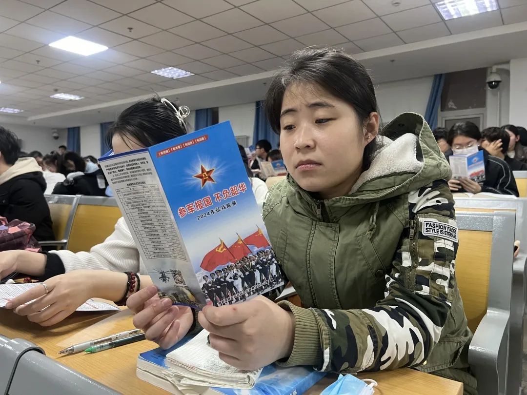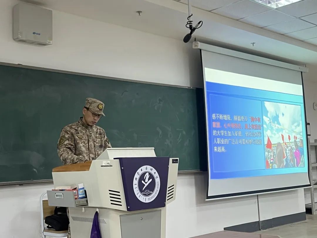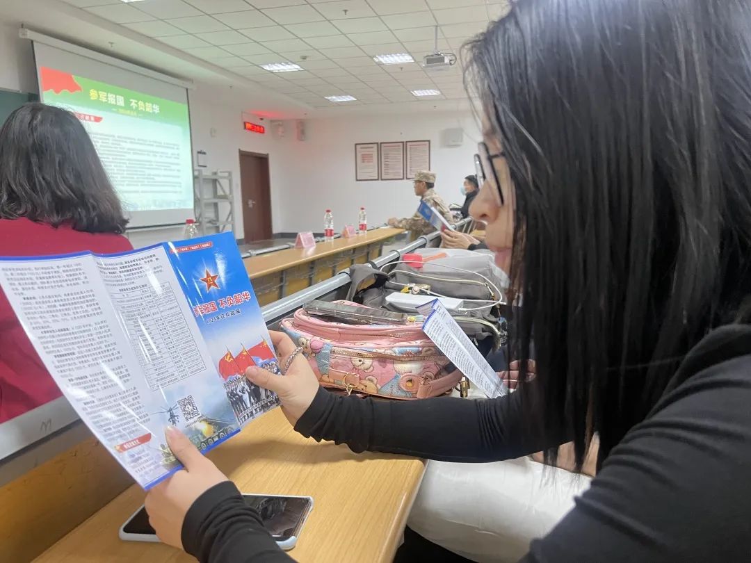 回民区武装部军事科科长冯志慧结合自身从军经历,围绕法律责任、征集条件、基本流程、优待政策、四优先、四大优势以及五项优待发展路径等方面详细展开宣讲,就大学生关注的入伍热点问题逐一做了解答。他号召同学们积极响应国家号召,携笔从戎、不负韶华,积极投身军营建功立业,把爱党之心、爱国之情转化为保家卫国之行。