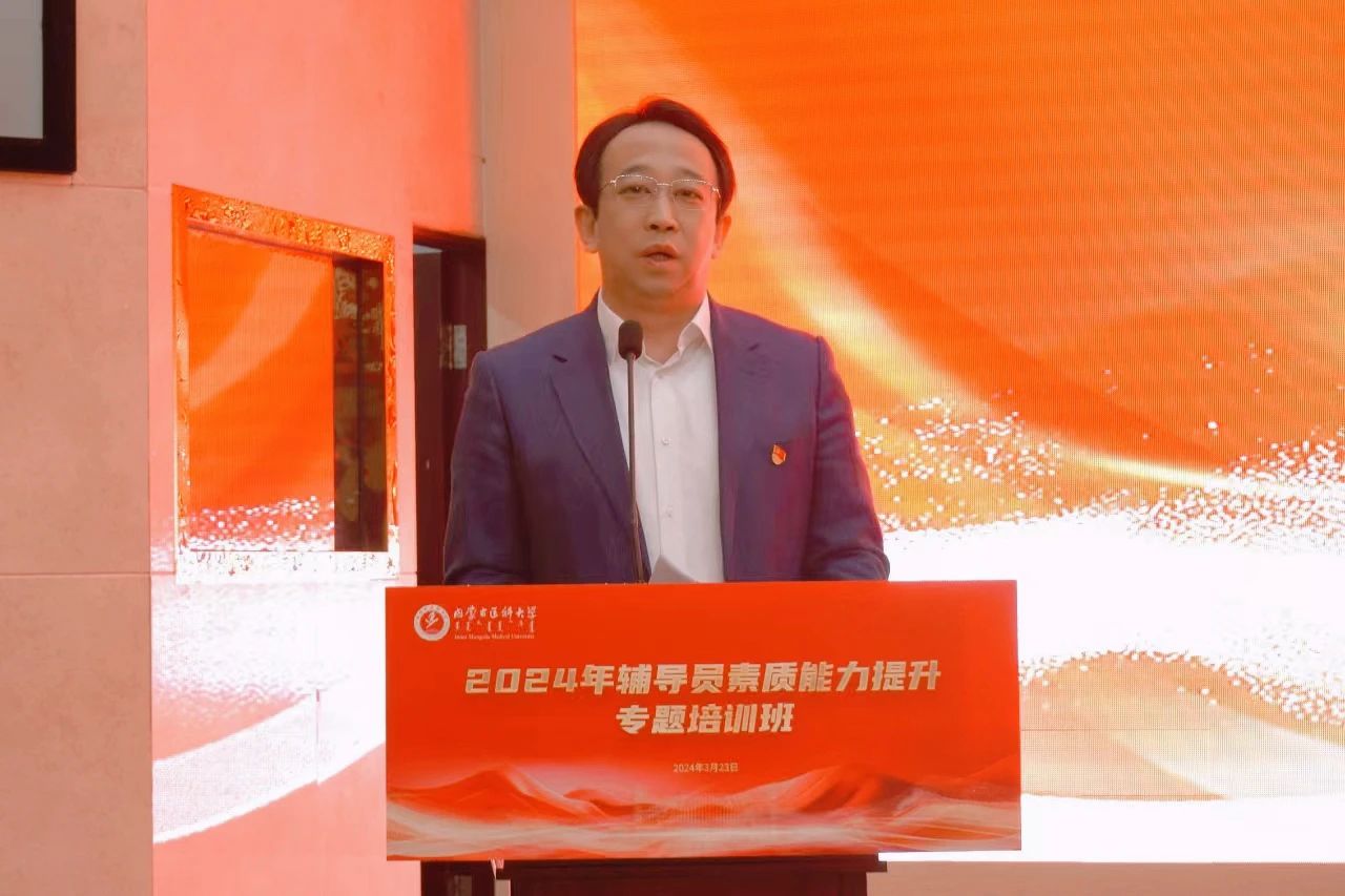 为推动学校“感党恩、听党话、跟党走”群众教育实践活动走深走实,切实提升辅导员的理论水平、职业能力和专业素养,促进辅导员队伍职业化、专业化、专家化发展。3月23日,学校在金山校区交流中心多功能厅举办了2024年辅导员素质能力提升专题培训班,学校党委委员、副校长鲁海文,教师工作部(教师发展中心)、学生工作部(学生工作处、武装部)、团委、招生就业处负责人出席了开班仪式,全校专兼挂职辅导员、2023级学生班主任、生活指导老师200余人参加了培训,开班仪式由学生工作部部长苏雅拉图主持,本次培训通过线上、线下相结合的方式同步进行。
