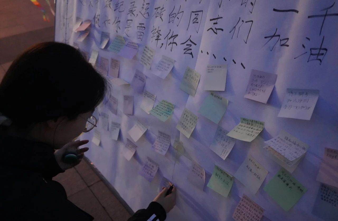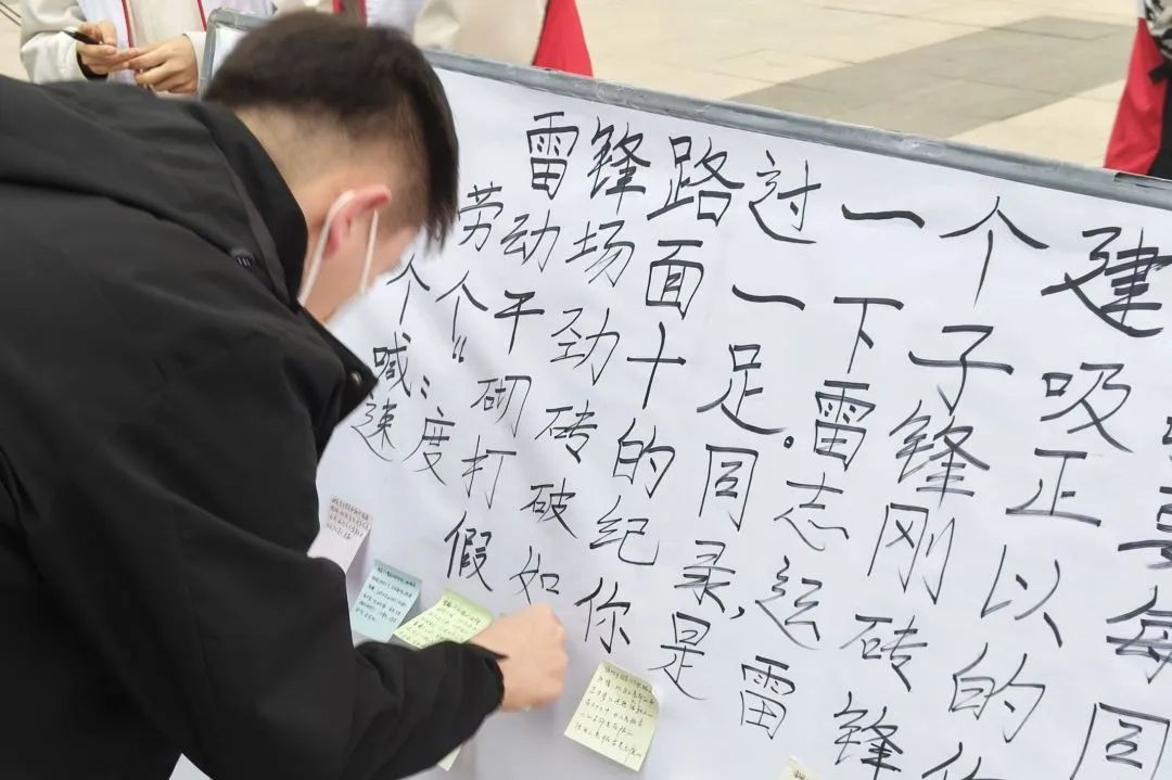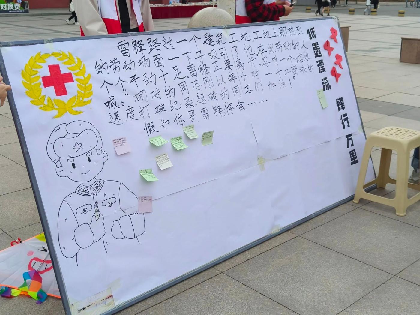 在此点位上摆放展板,让同学们将已有开头的雷锋故事续写,最后组成完整的雷锋故事。