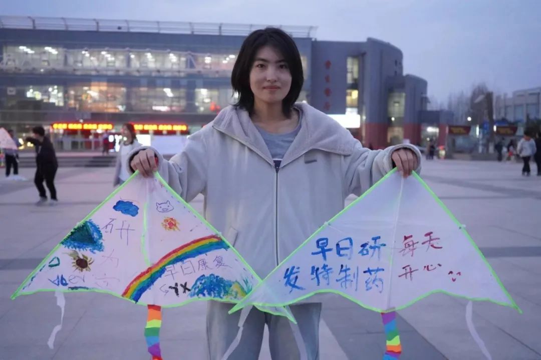 在此点位上,有涂鸦纸鸢,同学们可以在纸鸢上写下对艾滋病患者的祝福。