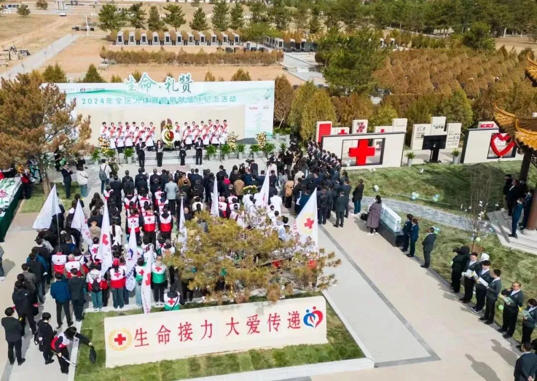 4月2日,由自治区红十字会、自治区卫生健康委主办,内蒙古医科大学、呼和浩特市红十字会、呼和浩特市万松福寿生态陵园有限公司承办的以“生命·礼赞”为主题的2024年内蒙古自治区遗体和人体器官捐献者缅怀纪念活动在呼和浩特市万松园人文纪念园举行。