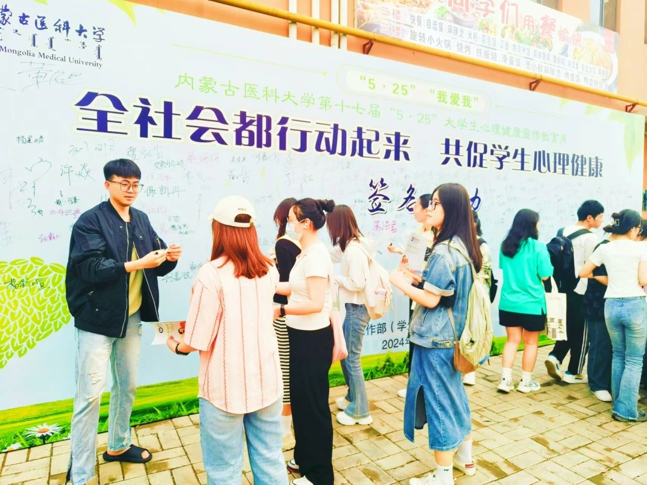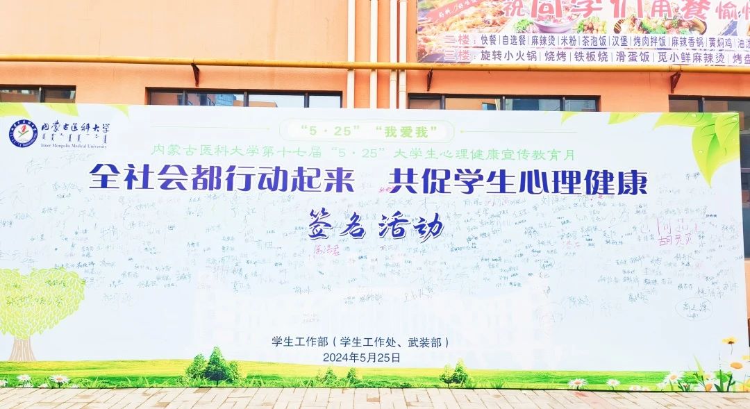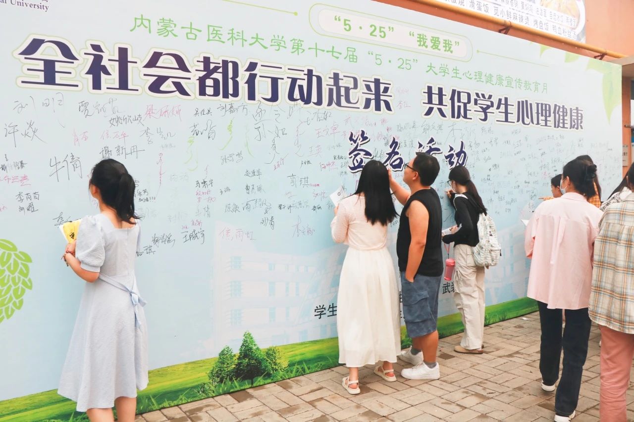 5月25日“大学生心理健康日”当天,学校第十七届“5·25”大学生心理健康宣传教育月系列活动之“全社会都行动起来,共促学生心理健康”签名活动在新华校区举办。本次活动旨在提高大学生对心理健康的认识,倡导自我关爱,促进心灵的阳光成长,共计1000余人参加。