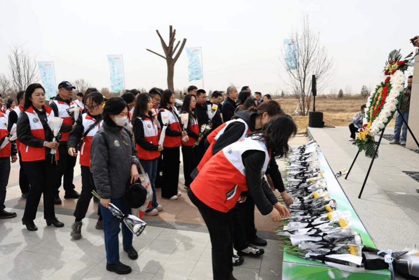 参加活动的人员共同向纪念碑敬献鲜花,表达对捐献者的哀思。