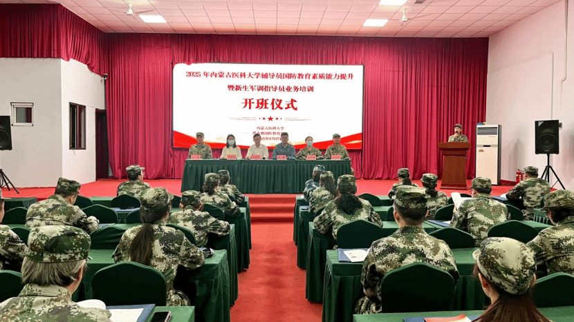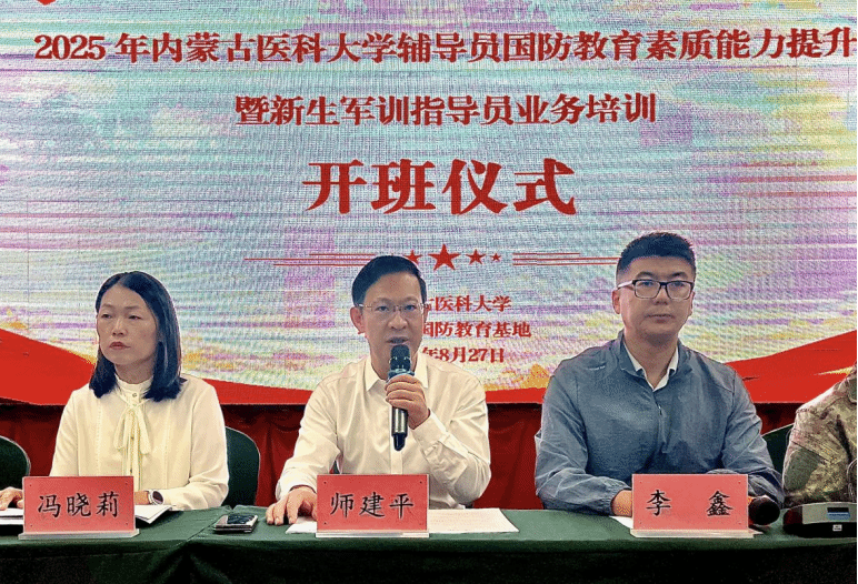 8月27日上午,2025年学校辅导员国防教育素质能力提升暨新生军训指导员业务培训班开班仪式在塔布赛国防教育基地举行。学校党委委员、副校长师建平,呼和浩特市全民国防教育社会发展中心常务副理事长吴艳超、副理事长王强、张海钢,各学院参训辅导员及学生工作部(学生工作处、人民武装部)相关负责人参加了开班仪式。开班仪式由学生工作部(学生工作处、人民武装部)部长(处长、部长)李鑫主持。