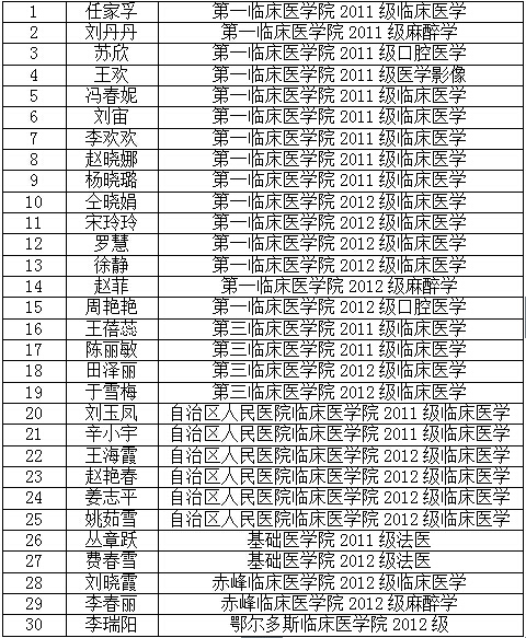 2014年人民卫生出版社“全国医药卫生院校贫困生扶助工程”资助我校家庭经济困难学生的教材,资助人数30人,经过各学院推选申报,名单如下: