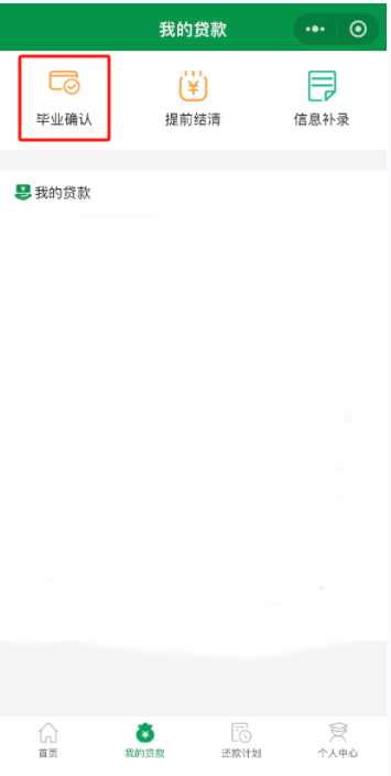 4.打开“毕业确认申请”界面,在查看确认已经完整填写相关信息后,提交毕业申请(注:务必认真核对贷款合同中贷款金额、发放日期、到期日期等关键信息, 若有问题,请联系县级学生资助中心进行处理)