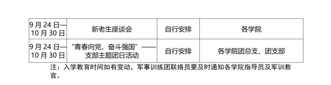 本专科、专升本学生入学教育由学生工作部(学生工作处、武装部)牵头,相关职能部门协同融入,学院承接落实。各学院要高度重视,成立新生入学教育工作专班,结合专业特色、学科特点和新生需求,制定切实可行的新生入学教育实施方案。通过集中学习、座谈交流、党团活动等多种形式,将新生入学教育与“时代新人铸魂工程”相结合,坚持文化知识学习与思想品德修养相统一、理论学习与社会实践相统一、全面发展与个性发展相统一,积极协调各方资源、调动各方力量,切实将入学教育做精做细做实。