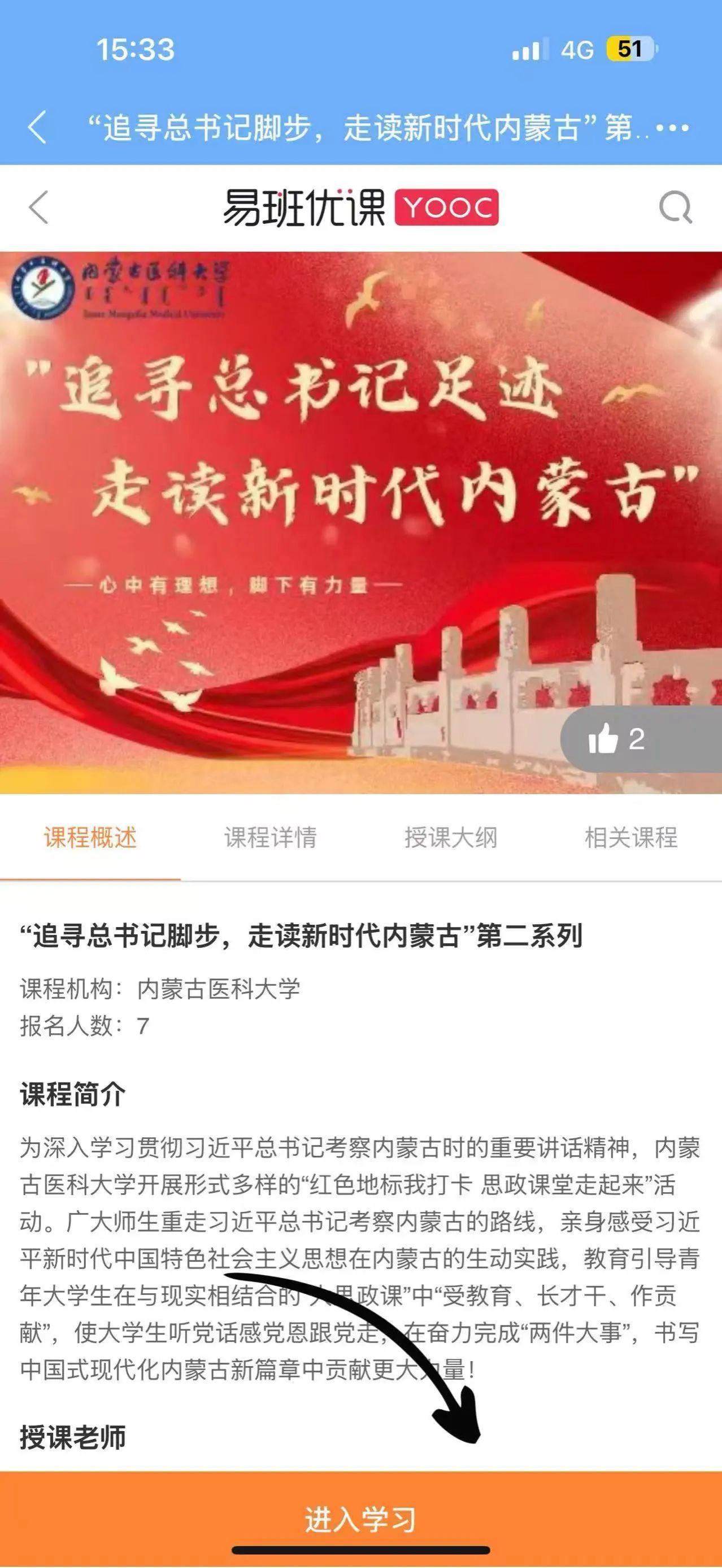 “追寻总书记足迹 走读新时代内蒙古”系列思政微课第二季正式上线易班优课,具体学习流程如下。