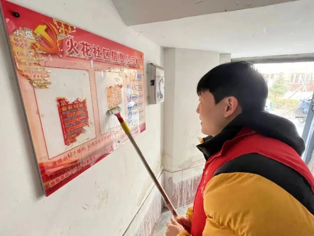 2024年3月5日上午,赤峰临床医学院本科生、研究生党支部在红山区火花社区党群服务中心组织开展“三月春光媚,‘锋’暖润心扉”主题党日活动。活动中,大家身着志愿者马甲,按照任务分工和清理标准进行分组,重点对小区内的小广告、不文明贴纸、杂物等进行清理,同时在社区公告栏进行公告粘贴,小区的卫生环境得到了有效改善,安全隐患也大大降低。