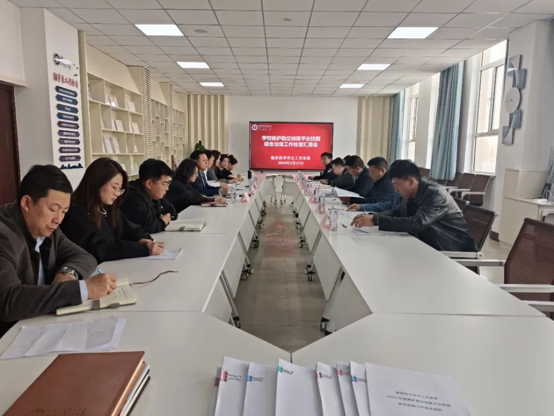 3月27日下午14:30,学校综合治理检查第二工作组组长安志新、副组长苏利一行7人来检查临床医学学生工作党委2023年度综合治理、意识形态、统战工作。综合治理汇报会在金山校区生活区B座辅导员发展中心召开,党委委员、各党支部书记、科级干部参加会议,会议由党委副书记张光旭主持。