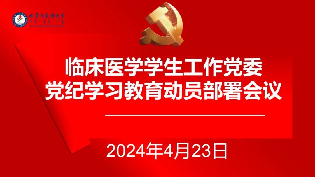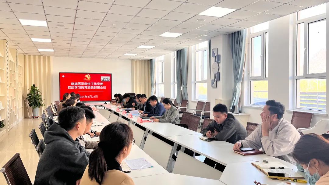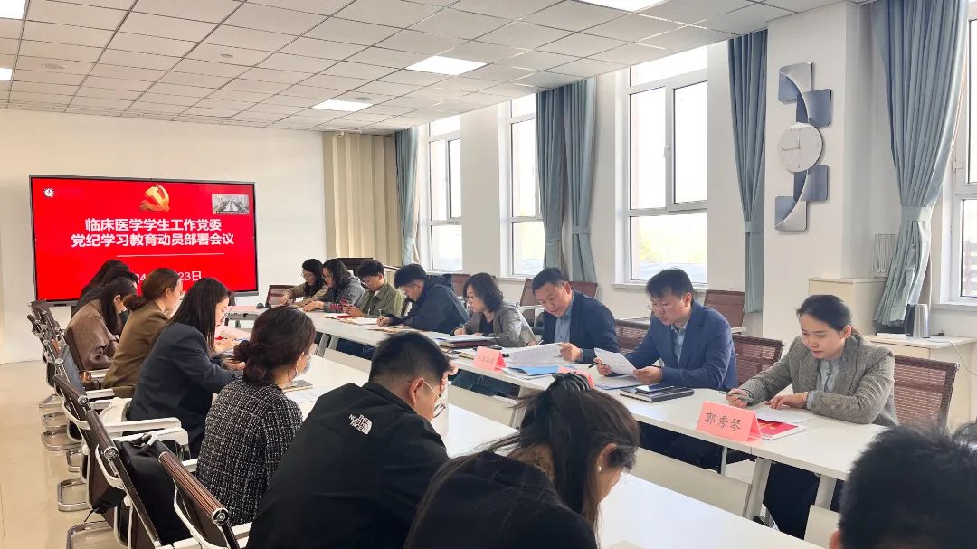 4月15日,临床医学学生工作党委在金山校区生活区B座辅导员发展中心召开党纪学习教育动员部署会议。临床医学学生工作党委委员、各党支部书记、全体教职工党员参加会议。会议由学生工作部副部长郭秀琴主持。