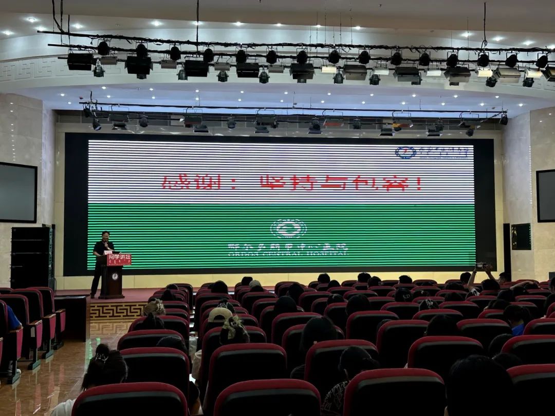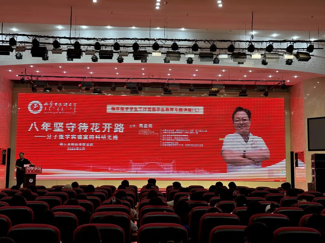为进一步加强学校学风建设,提高同学们对所学专业及行业的认识,拓宽同学们的科学研究视野,按照临床医学学生工作党委有关安排,近日,有幸邀请到了鄂尔多斯临床医学院高金亮教授莅临我校开展题为“八年坚守待花开路——分子医学实验室的科研之路”的精彩讲座。讲座由临床医学学生工作党委委员、学生工作部副部长赵珍主持,临床医学学生工作办公室副主任王淑慧老师、鄂尔多斯临床医学院辅导员陈裕靓老师、李帆老师参加讲座。