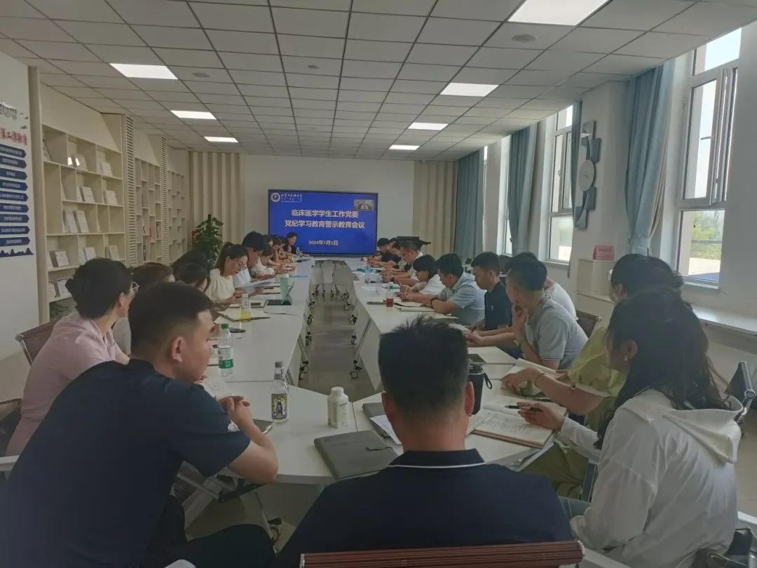 2024年7月1日下午,临床医学学生工作党委在金山校区辅导员发展中心开展党纪学习教育警示教育会议。党委委员、各党支部书记、全体教职工党员参加会议。会议由学生工作部副部长郭秀琴主持。