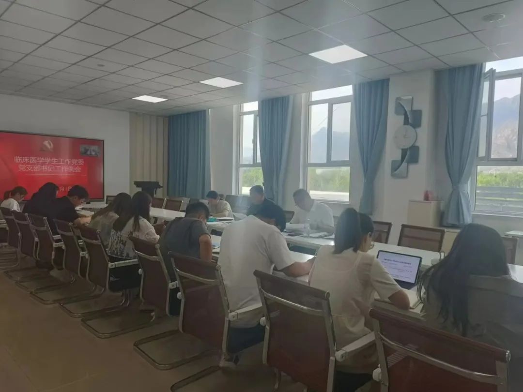 临床医学学生工作党委书记苏雅拉图安排部署近期重点工作。一是扎实开展党纪学习教育。各党支部把党纪学习教育作为当前重要的政治任务,认真梳理并组织开展各项党纪学习教育。确保党支部集中学习、党课、警示教育等方面的各项规定动作。二是经常深入教学医院,认真开展各项工作。校本部党支部书记一定要经常深入教学医院、深入学生中,开展谈心谈话、文体活动、学生座谈会、集中学习、党日活动等。三是认真组织开展庆祝中华人民共和国成立75周年系列文化活动。按照学校文件要求,广泛动员,认真组织、充分调动广大师生的参与热情,积极组织参加师生合唱比赛,师生书法、绘画、摄影、征文展评等活动。四是认真落实“三会一课”制度,做好发展党员、党费收缴、党组织关系转接等工作。