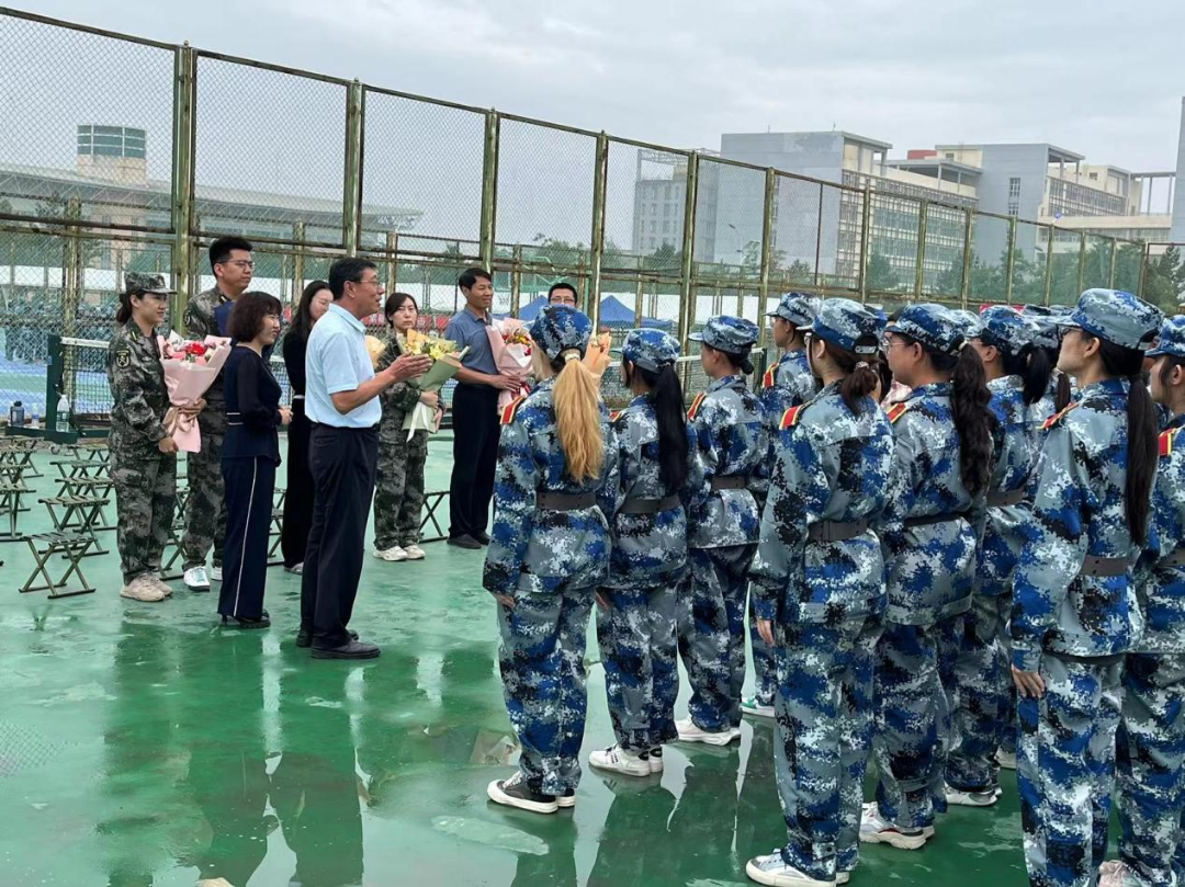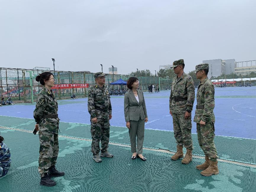 9月8日上午,在教师节即将来临之际,学院党委书记曹作勤,院长王焕芸,副书记、副院长陈建平,副院长马宇衡,副院长王晓琴在工会主席肖志彬、综合办副主任李冰等人的陪同下,来到训练场地慰问教官和跟训辅导员,为他们送上鲜花和节日的问候。