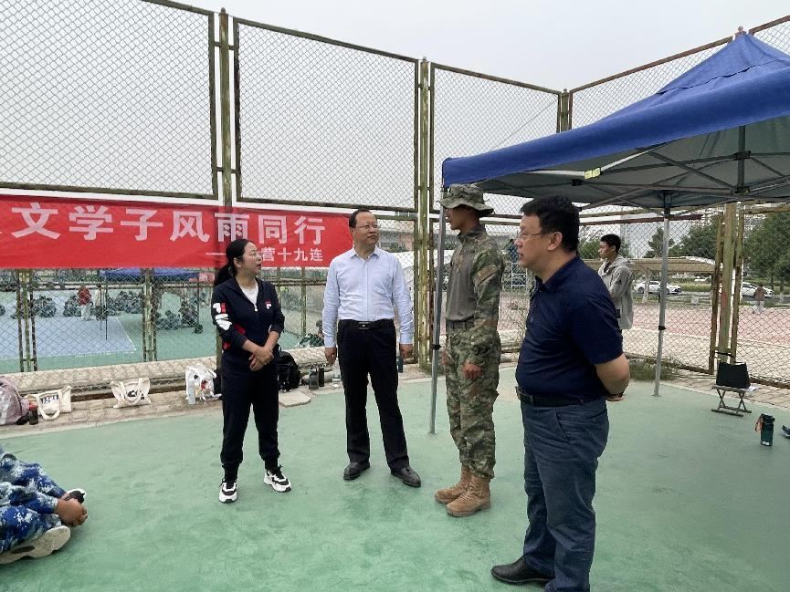 基础医学院党委书记李志明、院长李志军以及党委副书记兼副院长洪汀亲自来到训练场慰问基础医学院学生,与大家进行了亲切的交流,要求同学们在训练中一定要遵守纪律,认真训练。最后,温馨提醒大家做好防护措施,注意自身健康安全,圆满完成军事训练任务。