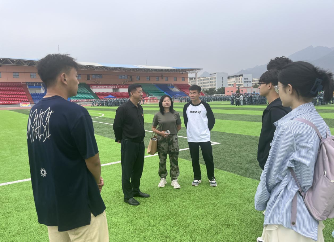 9月7日,公共卫生学院院长王学梅、党总支副书记李铁铮,来到军训场地看望和慰问军训教官、跟训辅导员以及全体学生。慰问中,学院领导与军训教官、参训学生热情交流,详细了解训练计划和进展情况,细心询问参训学生的训练感受和身心状态。并希望各位同学们能在训练中增强集体意识,继续发扬不怕苦、不怕累的训练作风,以更加饱满的热情投入到训练中,在保障自身健康的前提下,高质量完成各项训练任务。