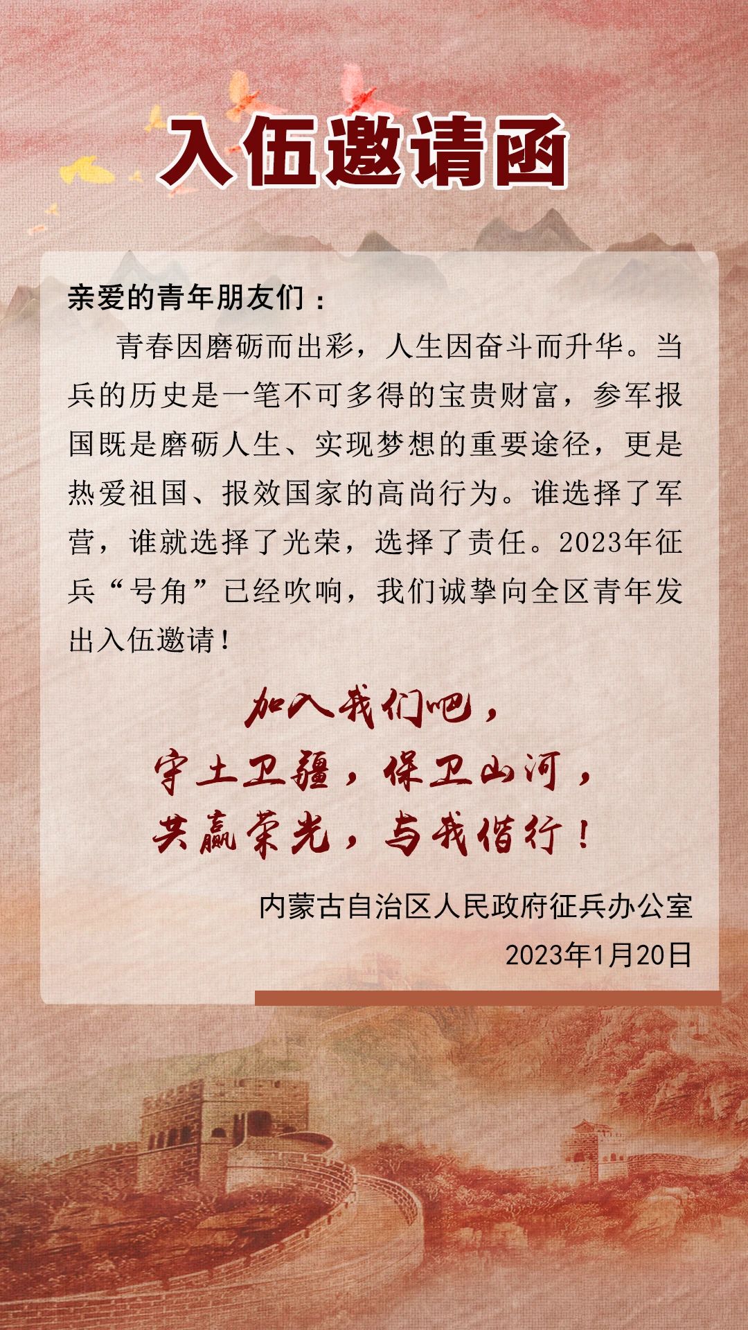 内蒙古2023年征兵宣传手册