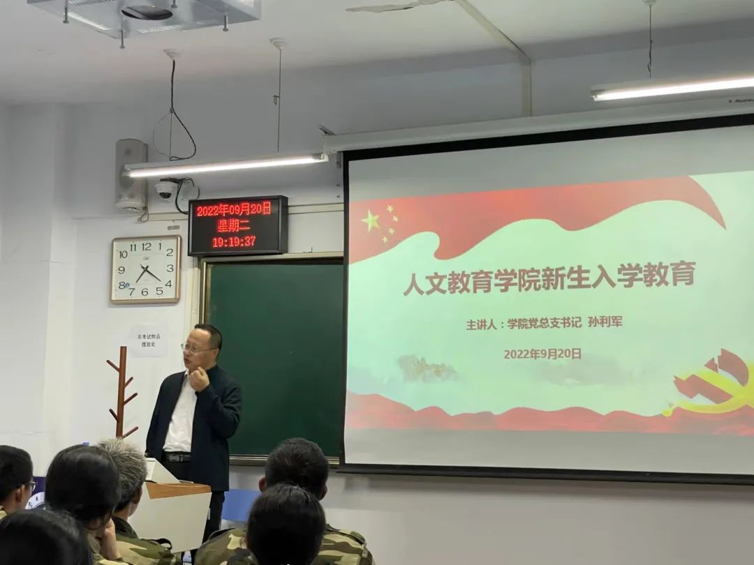 9月19日晚,人文教育学院开展了新生入学教育。学院党总支书记孙利军简单介绍了学校和学院的情况,并围绕思想、学习、体能和生活四个方面进行了讲话,随后学院心理学实验室负责人李玮从专业介绍、培养方案、目标定位三个方面介绍了应用心理学。