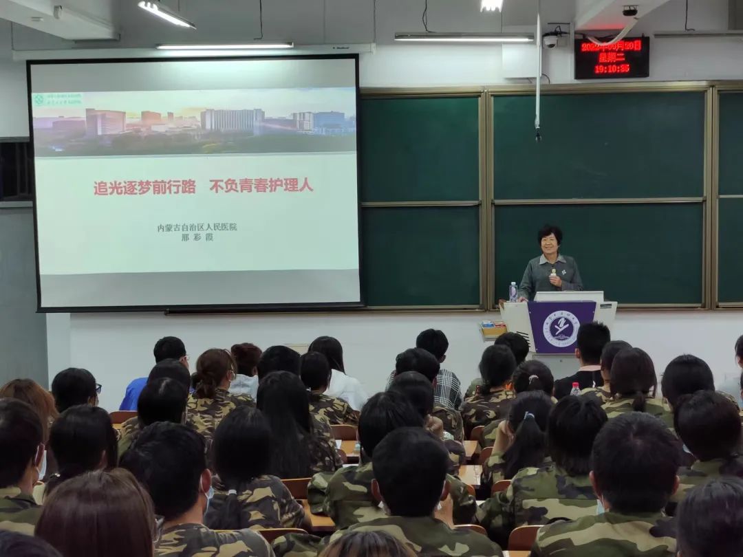 9月20日晚,护理学院邀请内蒙古自治区首位南丁格尔奖章获得者、内蒙古自治区护理领先学科带头人邢彩霞教授,为2022级新生开展《追光逐梦前行路,不负青春护理人》的专题讲座。本次讲座加深了新生们对护理学专业的理解,也使新生们体会到身为医护工作者的使命担当。同学们纷纷表示将在未来四年的学习中认真学习专业知识,努力成为一名优秀的新时代护理人。