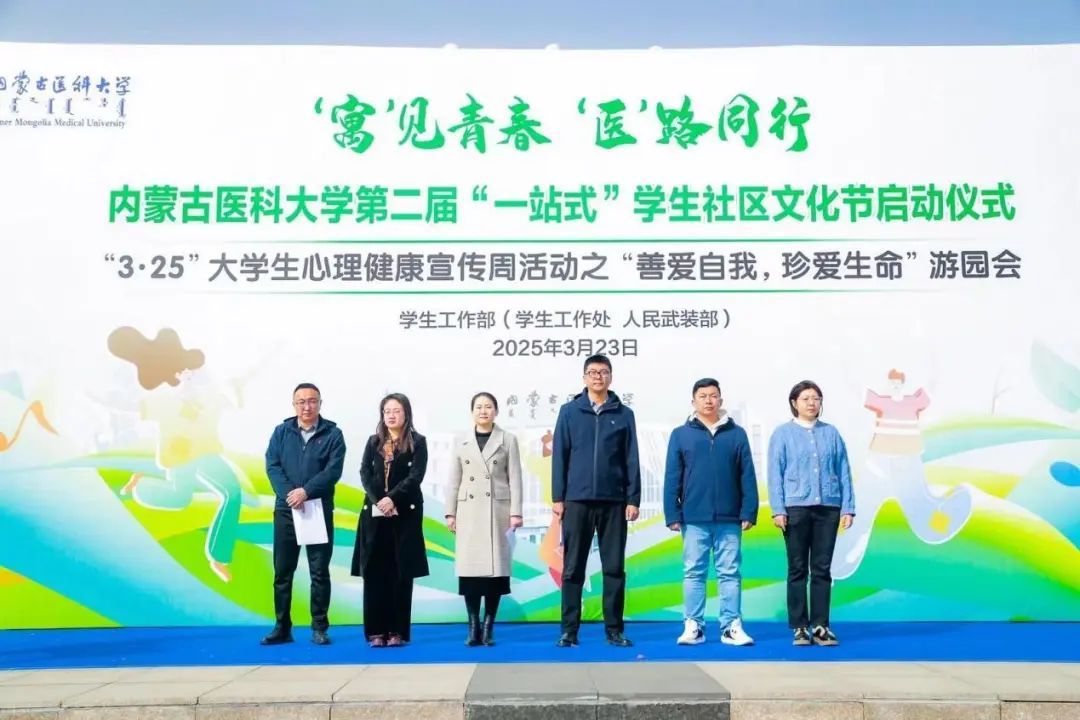 3月23日上午10点,在内蒙古医科大学金山校区生活区青春广场上举办第二届“一站式”学生社区文化节启动仪式暨“3・25”大学生心理健康宣传周活动之“善爱自我,珍爱生命”游园会,学生工作部(学生工作处、人民武装部)部长李鑫、副部长毛永强、郭秀琴参加活动,与师生代表齐聚一堂,共同开启这场意义非凡的活动。