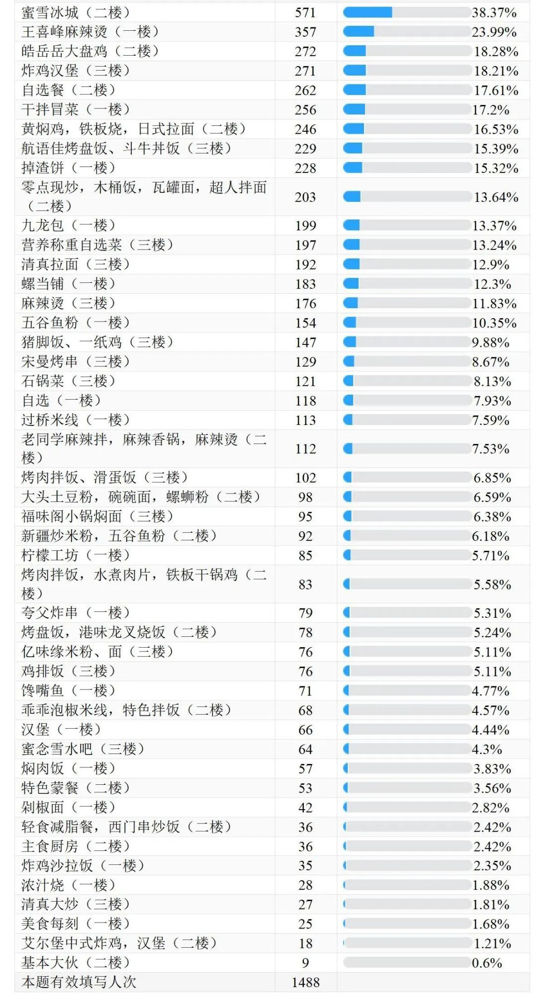 三月份学生餐厅满意度调查结果新鲜出炉啦!感谢同学们的积极参与,本次问卷调查收到金山校区学生餐厅满意度调查问卷1488份,现在向大家公布各餐厅档口排名情况与调查问卷结果。