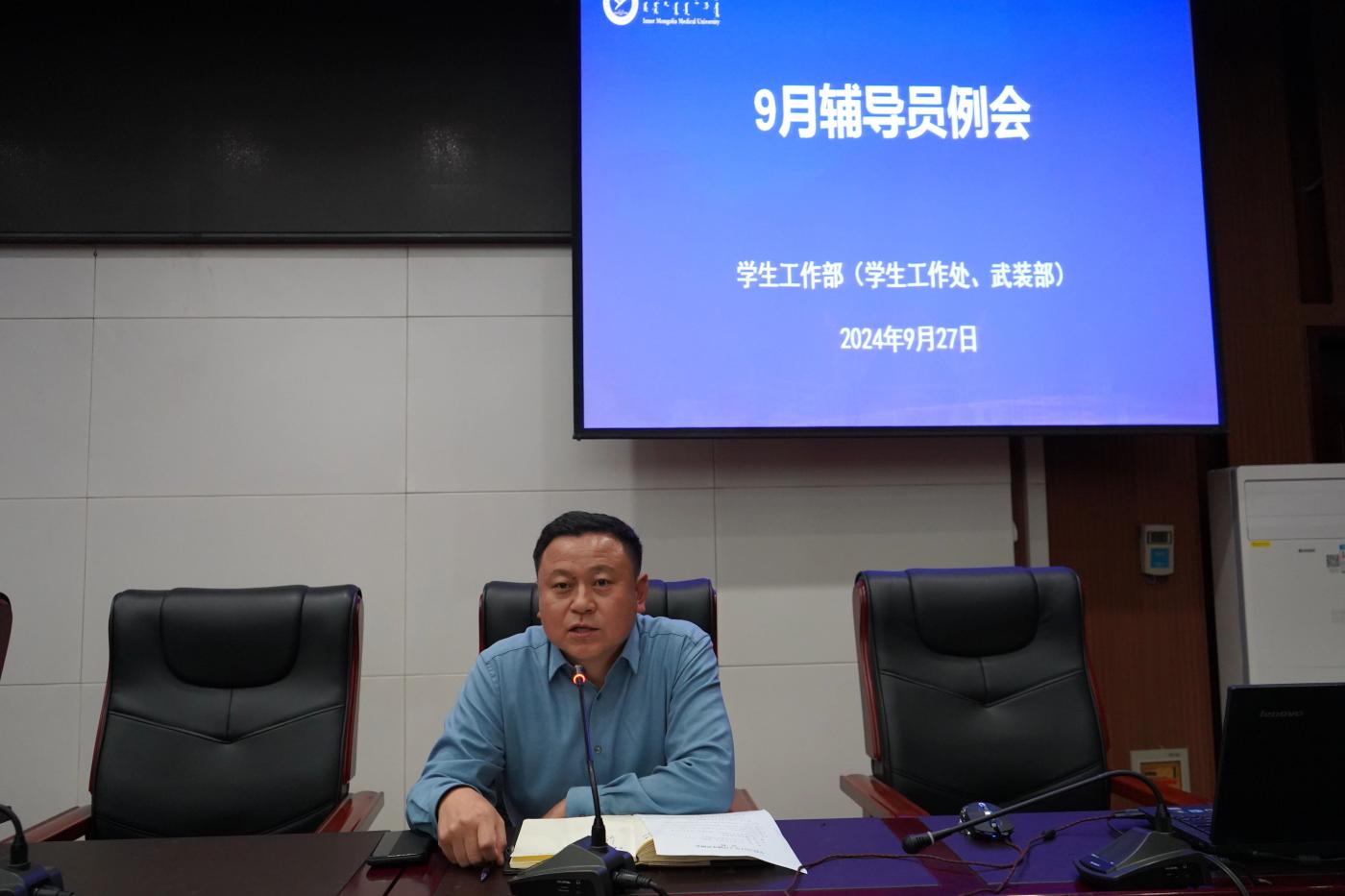 9月27日下午,学生工作部(学生工作处、武装部)组织召开2024年9月辅导员例会。各学院分管领导及全体辅导员参加。会议由学生工作部部长苏雅拉图同志主持。