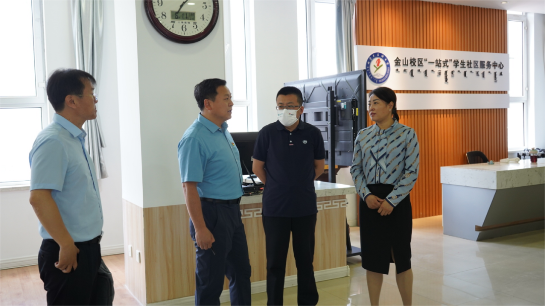 统筹谋划,一体部署。6月30日下午,学校在金山校区召开了“一站式”学生社区综合管理模式建设工作推进会,对前一阶段工作进行总结,并研究部署下一步工作任务。学校党委书记、校长赵云山,有关部门、学院负责人实地参观了学校“一站式”学生社区服务中心等地,并参加座谈会。学生工作部部长苏雅拉图传达了自治区教育厅对“一站式”学生社区建设的工作要求,并汇报了我校有关建设情况。赵云山对做好“一站式”学生社区建设工作提出了四点要求:一是要卯足敢于担当、敢走新路的闯劲。要进一步提高政治站位,高度重视“一站式”学生社区建设工作,形成全员协同配合的工作格局。二是要卯足紧盯不放、一抓到底的狠劲。要按照实施方案,统筹谋划,重点突破,分期分批分步骤扎实推进工作。三是要卯足扎根一线、服务学生的拼劲。要以扎实推进学习贯彻习近平新时代中国特色社会主义思想主题教育为契机,着力推动学校育人力量和资源整体下沉到学生社区,以高质量党建引领“一站式”学生社区建设。四是要卯足踏实肯干、广泛交流的钻劲。要持续保持求真务实、干事创业的激情,总结、凝练、宣传学校“一站式”学生社区建设中的好经验好做法,推进学校“一站式”学生社区综合管理模式建设工作再上新台阶。