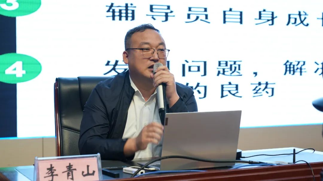 沈阳工业大学李青山教授作题为《谈心谈话的思路与方法》的专题授课。李青山教授围绕大学生思想政治教育中谈心谈话的重要意义、谈心谈话的工作要点等,详细讲述了八种常见的谈心谈话方法。通过案例分享、经验交流,剖析谈心谈话的本质,总结出谈心谈话的十大特点,指导班主任掌握正确的谈心谈话技巧,高效开展大学生日常思想政治教育,做好大学生成长成才的人生导师和健康生活的知心朋友。