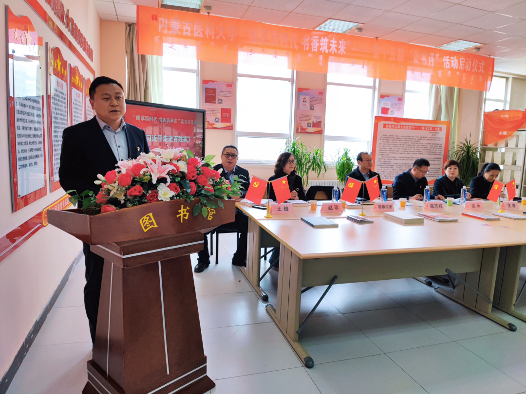 高乐致辞。他强调,2023年是全面贯彻落实党的二十大精神的开局之年,在实现中华民族伟大复兴中国梦的征程中,读书可以坚定理想信念,凝聚精神力量,获取文化滋养。希望广大师生把深入开展学习贯彻习近平新时代中国特色社会主义思想主题教育与积极参与“读书月”活动结合起来,共同营造爱读书、读好书、善读书的文化氛围。高乐宣布内蒙古医科大学“阅享新时代 书香筑未来”第十五届“读书月”活动正式开幕。
