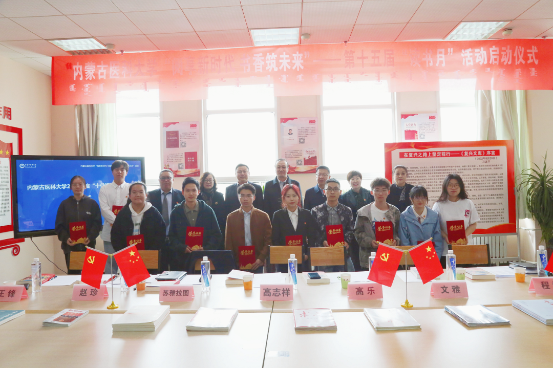 4月23日上午,内蒙古医科大学“阅享新时代 书香筑未来”第十五届“读书月”活动启动仪式在图书馆红色文献阅览室举行。学校党委副书记高志祥,党委委员、宣传部部长高乐,学生工作部、工会、图书馆等部门负责人以及教师代表、学生代表60余人参加了启动仪式。启动仪式由图书馆馆长王锋主持。