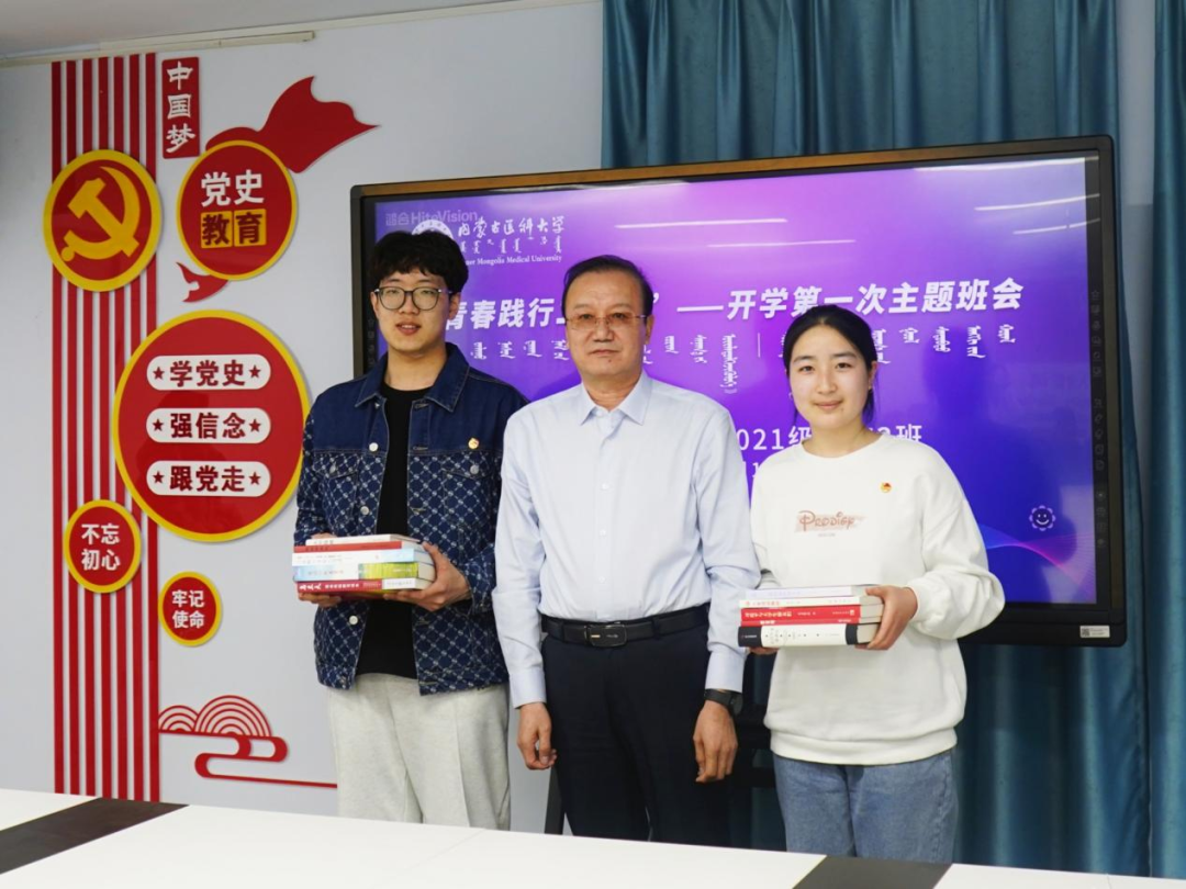 高志祥带领同学们重温了医学生誓词,并为班级学生赠送书籍。班会结束后,同学们纷纷表示,要以实际行动践行党的二十大精神,切实铸牢中华民族共同体意识,坚定不移听党话、跟党走,牢记“健康所系、性命相托”的医学生誓言,坚持“博学、尚行、精诚、至善”的校训,争分夺秒、刻苦学习、脚踏实地、担当作为,在中国式现代化的生动实践中,成就青春自我,绽放绚丽之花。