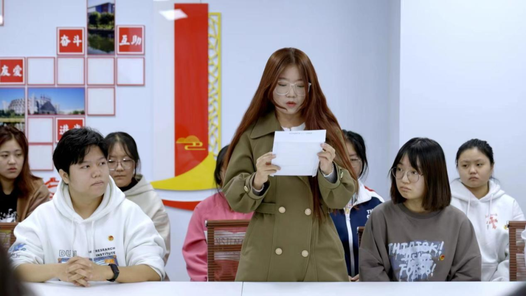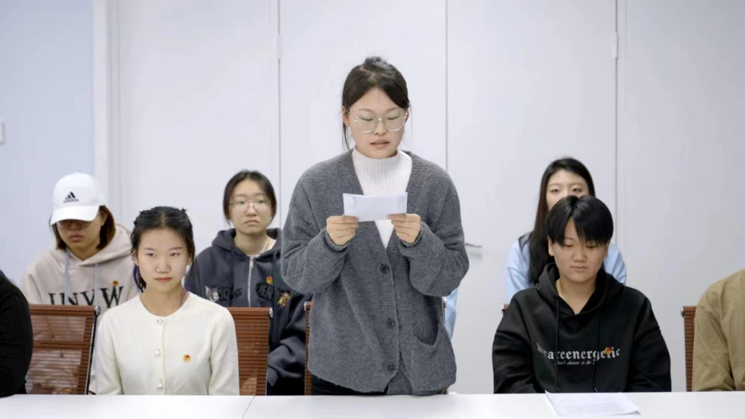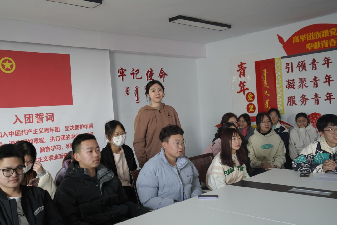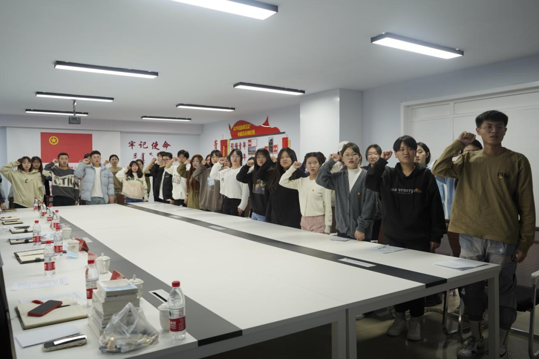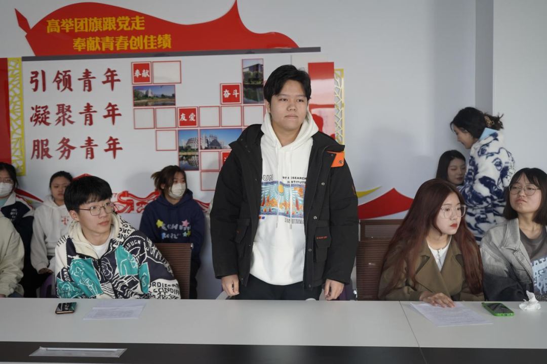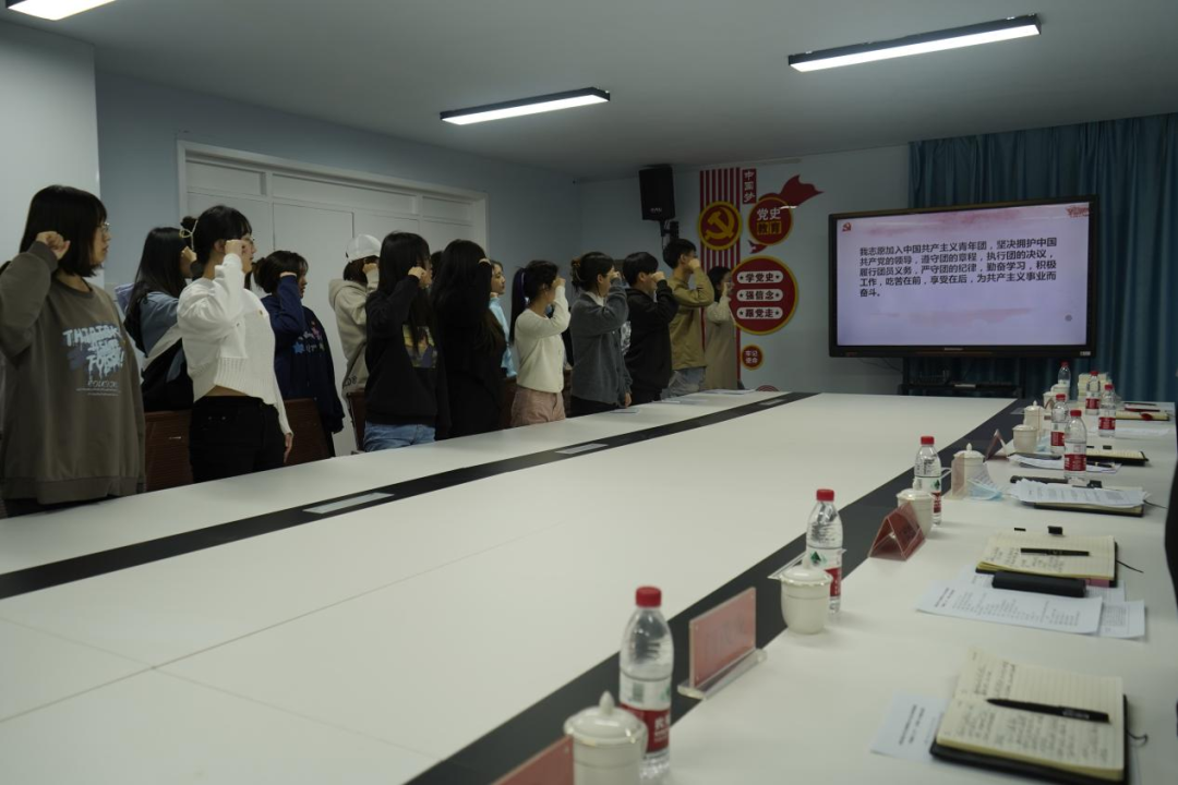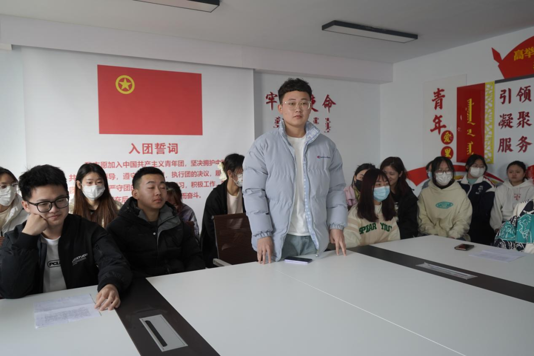 班长带领同学们重温了入团誓词,同学们更加坚定了为国家、社会和人民服务的理想信念。同学们纷纷表示,要立志珍惜学习时光、磨炼专业技能本领、心无旁骛求知问学,一如既往地保持拼搏奋发、积极向上的姿态,不负时代,不负华年,用奋斗书写最闪亮的青春答卷!