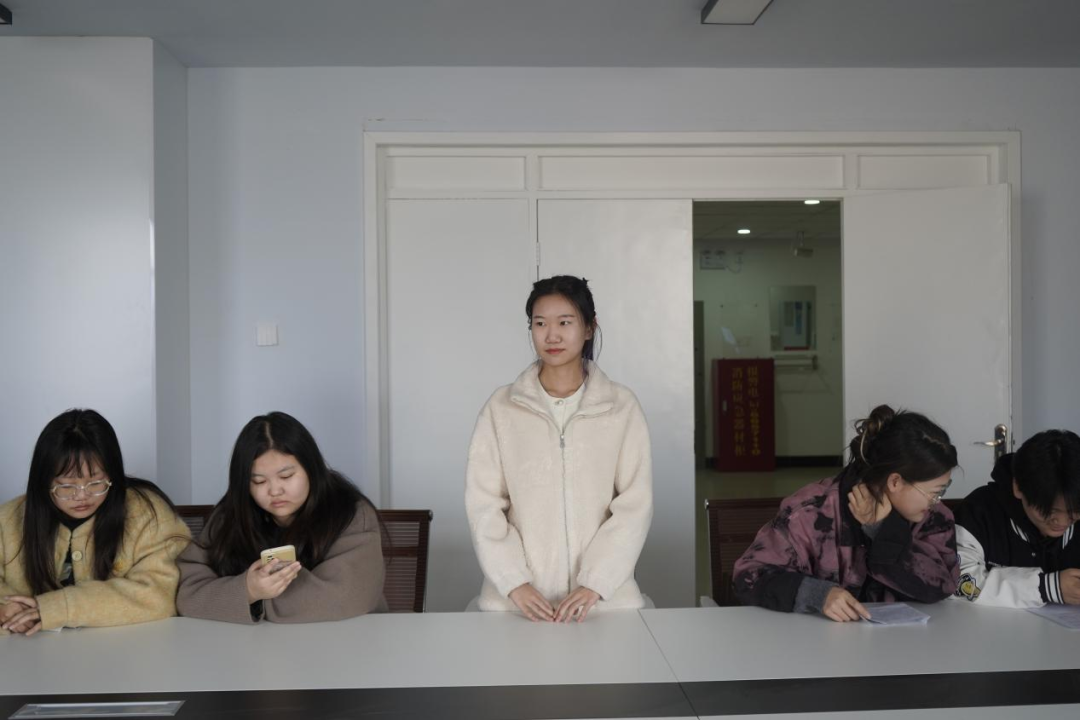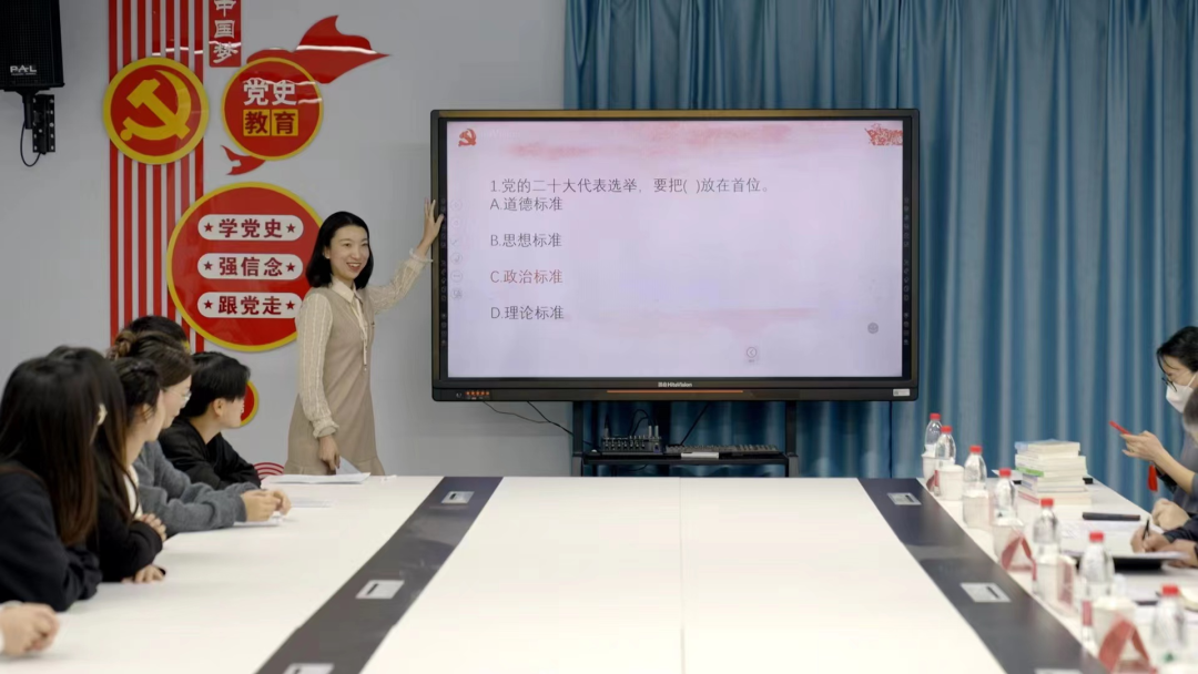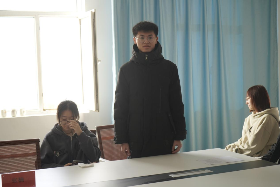康婷介绍了班级基本情况。同学们进行了党的二十大相关知识竞答。李润泽、康晋豪、赵玥、敖羽彤、任燕静等学生代表围绕“青春践行二十大”这一主题展开发言。蔡畅、董继宗、刘禹麟等学生代表针对现阶段学习、生活等方面存在的疑惑进行了现场提问,在座老师进行了“一对一”指导解答。