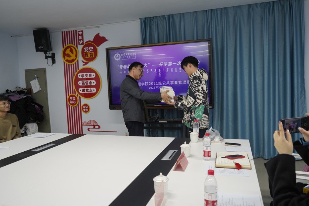 3月3日上午,学校党委委员、纪委书记、自治区监委驻内蒙古医科大学监察专员、二级高级监察官苏振荣深入卫生管理学院2021级公共事业管理班参加“青春践行二十大”开学第一次主题班会。纪委办公室主任闫茂龙,学生工作部部长苏雅拉图,卫生管理学院党总支书记任孝东,卫生管理学院党总支副书记、副院长张楠,学生工作部老师和学院辅导员、班主任参加了主题班会,班会由班主任康婷主持。