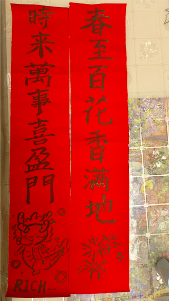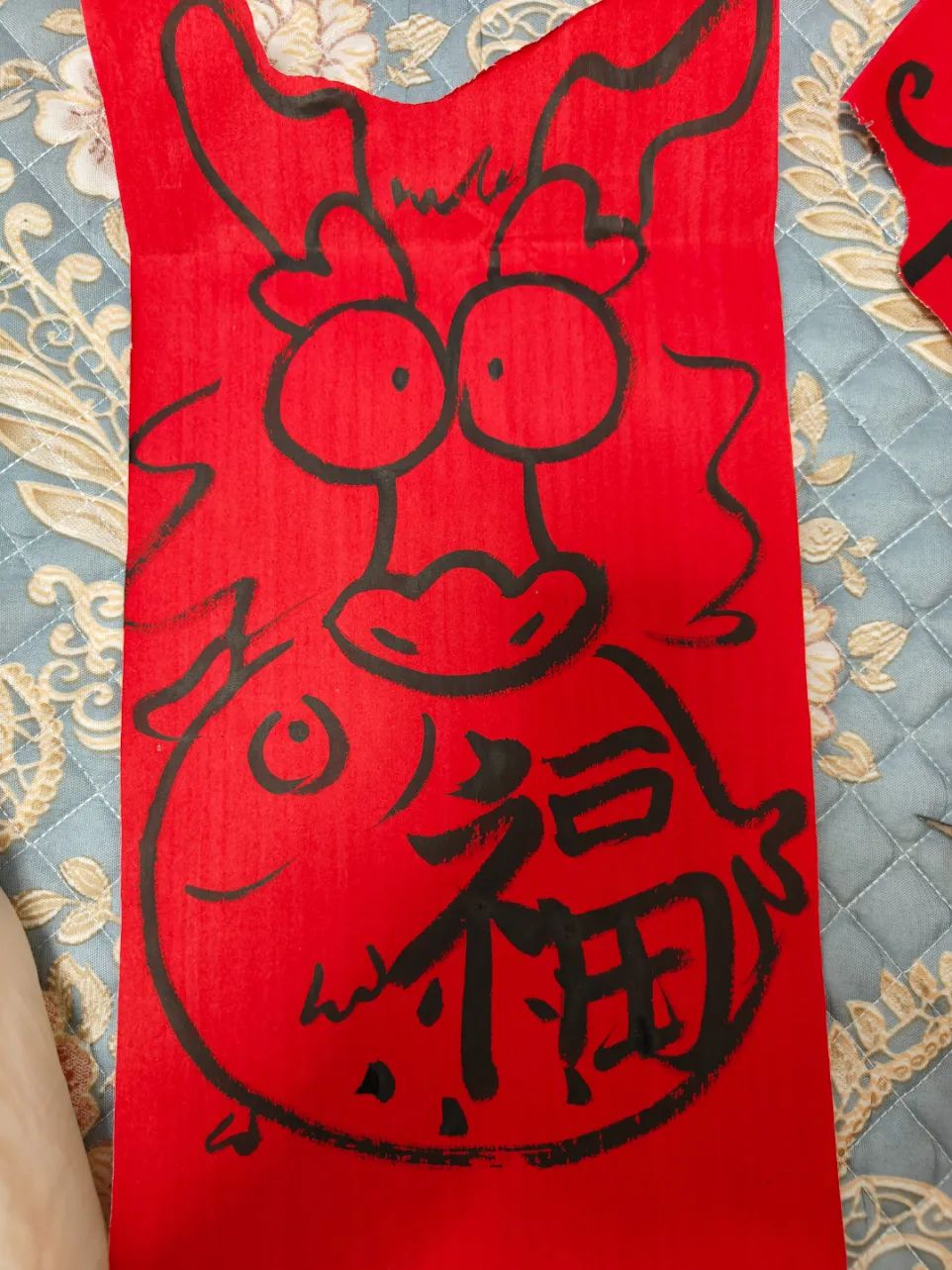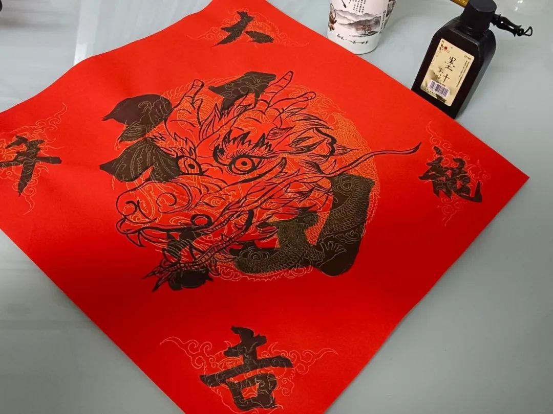 玩转年俗,亲手写福字,迎接新年到来。亲手写对联,迎来一年的好兆头。在对联画上“小龙”,期盼龙年大吉。