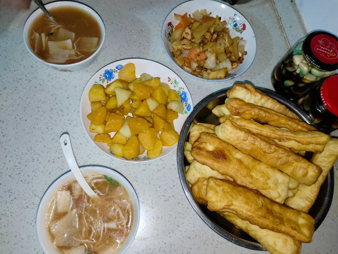 2.做甜口油条,配上萝卜汤,暖胃舒心。