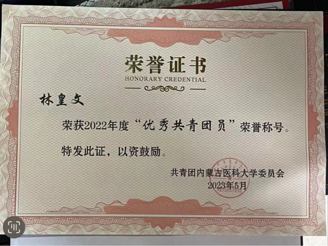 林皇文,一名中共预备党员,内蒙古医科大学中医学院2020级中医教改班的学生。