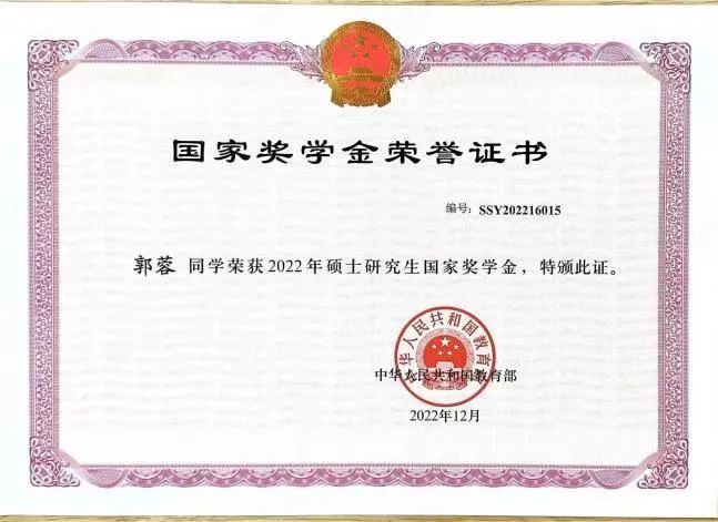 奋斗是青春最亮丽的底色。在学业科研方面,她丝毫不懈怠。她认真学习专业课程,伴朝霞出发、携暮色而归成为她生活的日常,连续2年综合素质测评成绩年级排名位列第一,荣获国家奖学金、自治区三好学生、校级优秀学生荣誉。