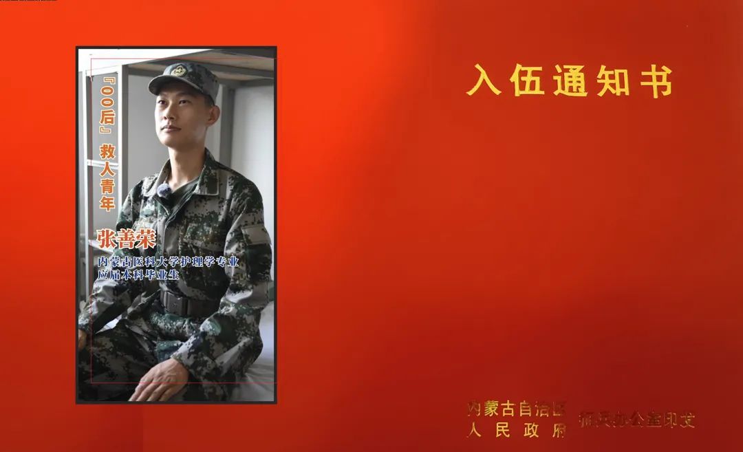 每当谈及救人经历,张善荣总是淡然地说,当时第一时间并没有想太多,换做每一个医学生,大家都会这样做的。当谈到为什么选择投笔从戎、参军入伍,张善荣则表示,从小他便对军营充满了向往,一直有着浓厚的军人情结。每当在电视机前看到国庆阅兵时威严肃穆的军人身影,心中常感到热血澎湃,希望能够从军入伍,像他们一样能够为祖国贡献一份青春力量。